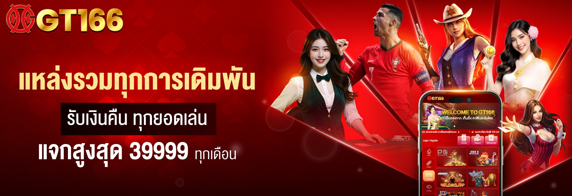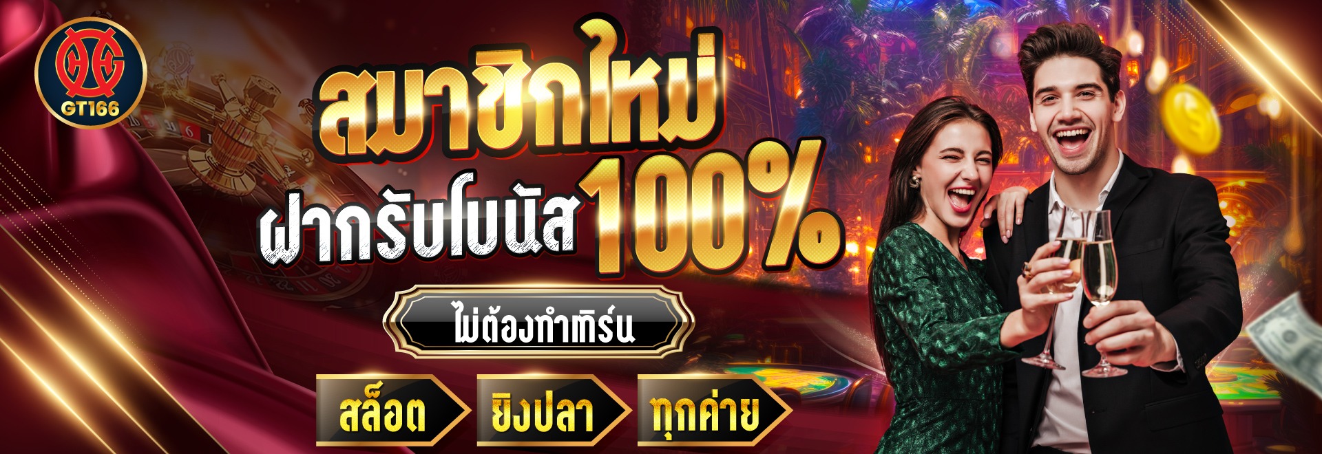 GT166 นำเสนอโปรโมชั่นสุดพิเศษที่จะทำให้ประสบการณ์การเดิมพันของคุณคุ้มค่ายิ่งขึ้น ด้วยข้อเสนอโบนัสสูงสุด 100% สำหรับทุกยอดฝาก ซึ่งเป็นโอกาสอันดีที่สมาชิกจะได้เพิ่มเงินทุนในการเล่นเกมที่ชื่นชอบ